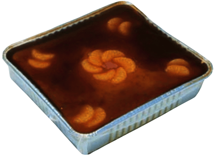 Fett från gris*, grislever* (36%), MJÖLK*, gelétopping (vatten, mandarin, gelatin, socker, salt, jästextrakt, färgämne (E150c)), socker, potatismjöl, salt, MJÖLKpulver, kryddor (basilika, mejram, lagerblad), lök, kryddextrakt (kryddnejlika, svartpeppar), arom, konserveringsmedel (E250). *Svensk råvara.